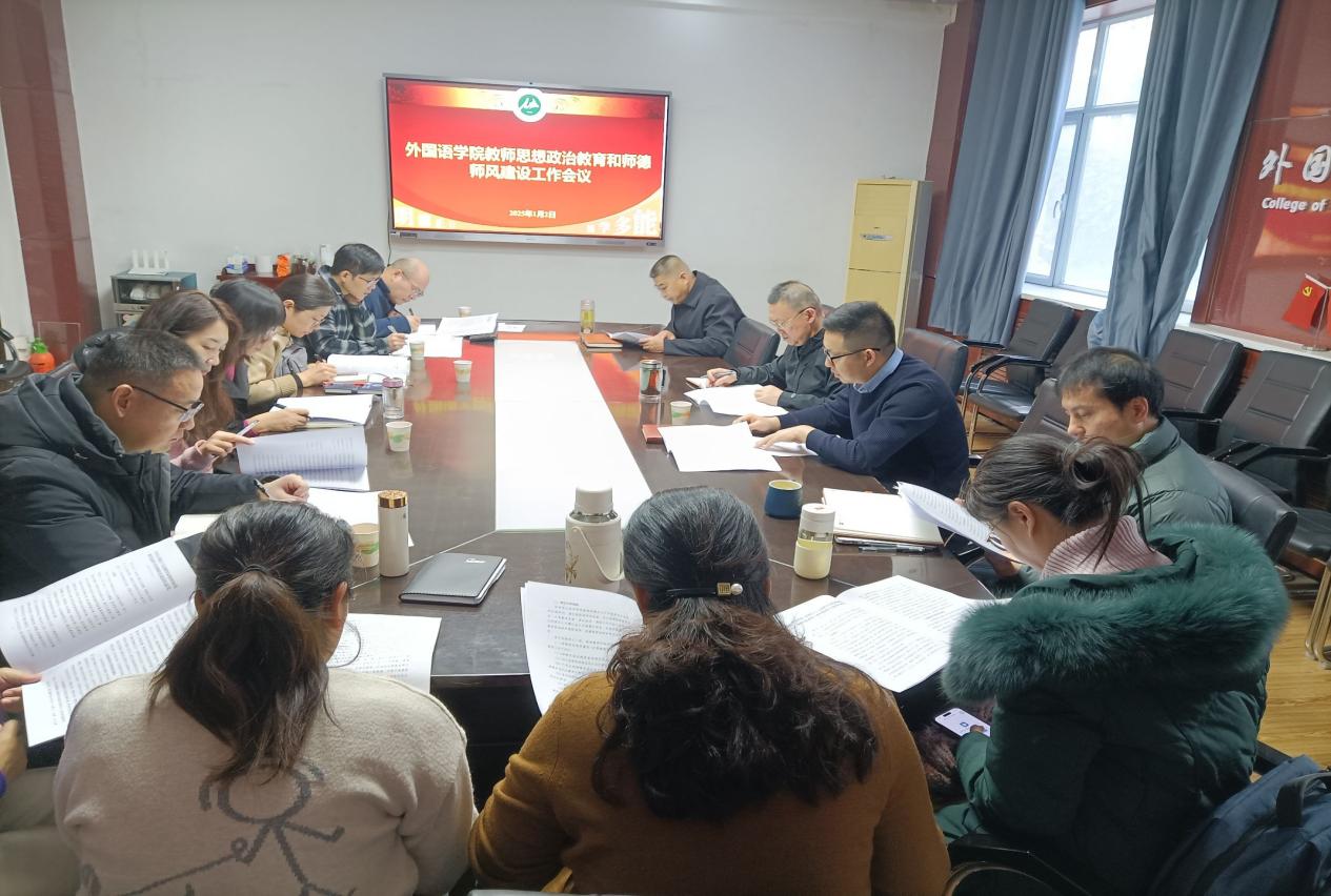 2025年1月2日上午,乐动网站网页版召开教师思想政治教育和师德师风建设专题会议。此次会议旨在全面贯彻落实党的教育方针,进一步加强教师队伍建设,弘扬新时代教育家精神,提升教师的思想政治素质和职业道德水平,为培养更多高素质、专业化的外语人才奠定坚实基础。学院全体党委委员、各教学系主任及书记、各办公室负责人参会,会议由学院党委书记陈荣泉主持。