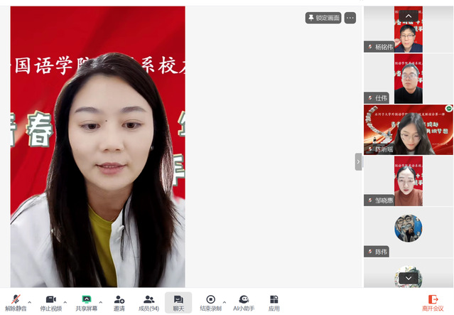 2025年2月18日晚上9点,石河子大学乐动网站网页版英语系成功举办了一场线上校友联谊会。四位来自2014级的杰出校友——李仕伟、高超、白芸、王肖同学,重返学院“云端”讲堂,为24级的学生们带来了一场内容丰富、视角独特的分享会。英语系叶春莉老师主持此次交流活动,乐动网站网页版党委副书记罗才良老师以及学办、教办、英语系全体领导和班主任老师参与了本次活动。