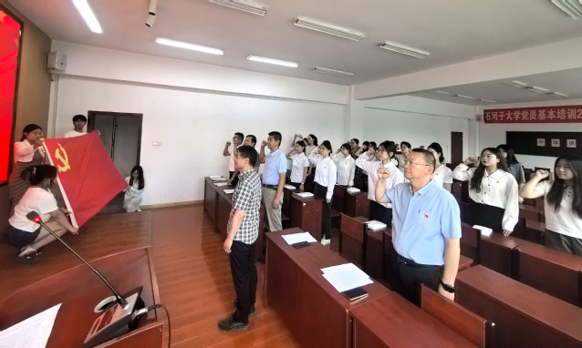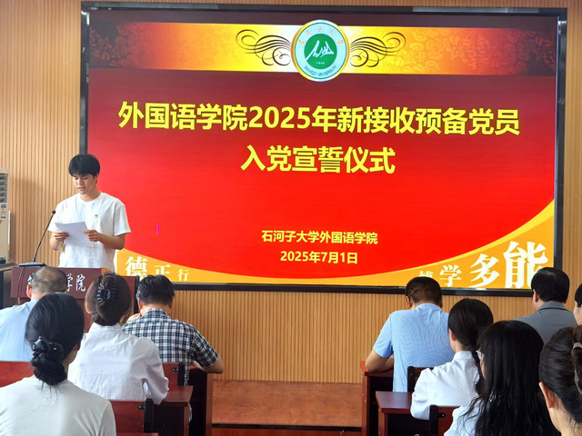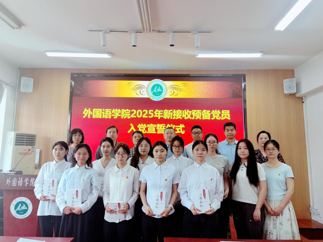 党委副书记罗才良宣读新接收预备党员名单,读出一个个崭新的名字,宣告着新鲜血液注入党组织,同时对各党支部提出要求:要进一步加强对预备党员的教育、培养和考察工作。严格落实党内组织生活制度,通过开展主题党日、集中培训、实践锻炼等多种形式,帮助预备党员提升党性修养,增强党员意识。紧接着,学院领导和党支部书记为新接收预备党员佩戴党员徽章、赠书。闪耀的党员徽章别在胸前,承载着党的嘱托与期望;手中的书籍,更是开启党员学习新征程的钥匙,激励着新党员不断汲取知识提升自我。