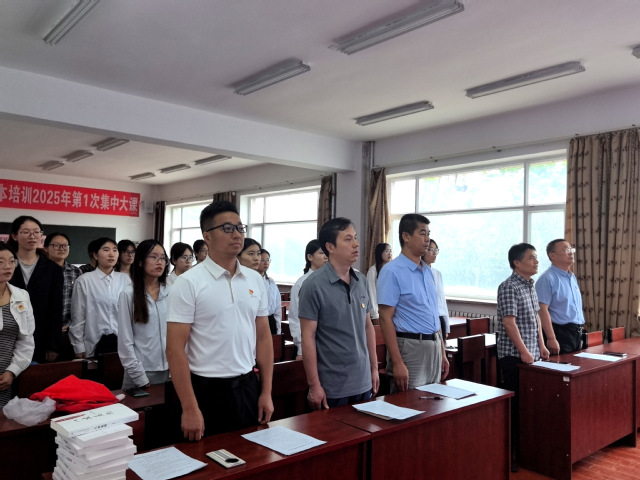 入党宣誓环节由宋成方副院长作领誓人,面向党旗,全体预备党员整齐列队,在领誓人的带领下,逐句宣读入党誓词。誓言铮铮,字字千钧,每一位预备党员都以饱满的热情和昂扬的斗志,表达着对党的无限忠诚与为共产主义奋斗终身的坚定决心。宣誓完毕,全体预备党员向党旗行注目礼,眼神中满是崇敬与自豪。