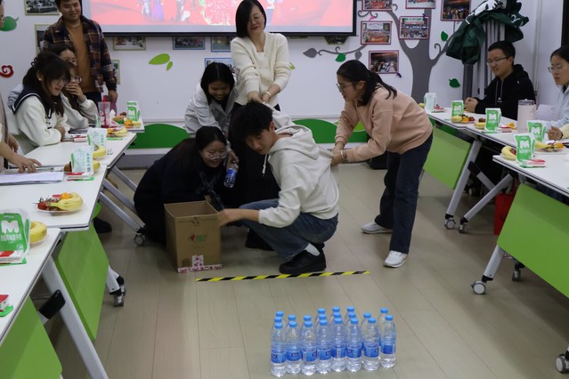 随之而来的是备受期待的破冰游戏环节。本次活动精心设计了两个趣味十足且富有专业特色的游戏,分别是看图片猜单词和“极限取水”。在游戏中,结亲师生们充分发挥自己的智慧和团队协作精神,深深沉浸在趣味与专业相结合的游戏氛围中。他们踊跃参与,欢声笑语回荡在整个活动室的每一个角落。