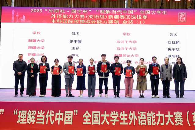来自新疆大学的张宇馨等17人获本科国际传播综合能力赛项金奖、29人获银奖、36人获铜奖、10人获优胜奖。