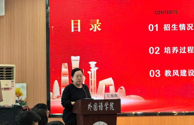 随后,教学科研办公室主任张楠围绕教风学风建设作专题发言,系统介绍了学院在学风建设、教风提升方面的成效与数据,并反馈了调研中收集的突出问题,为下一步工作改进提供了依据。